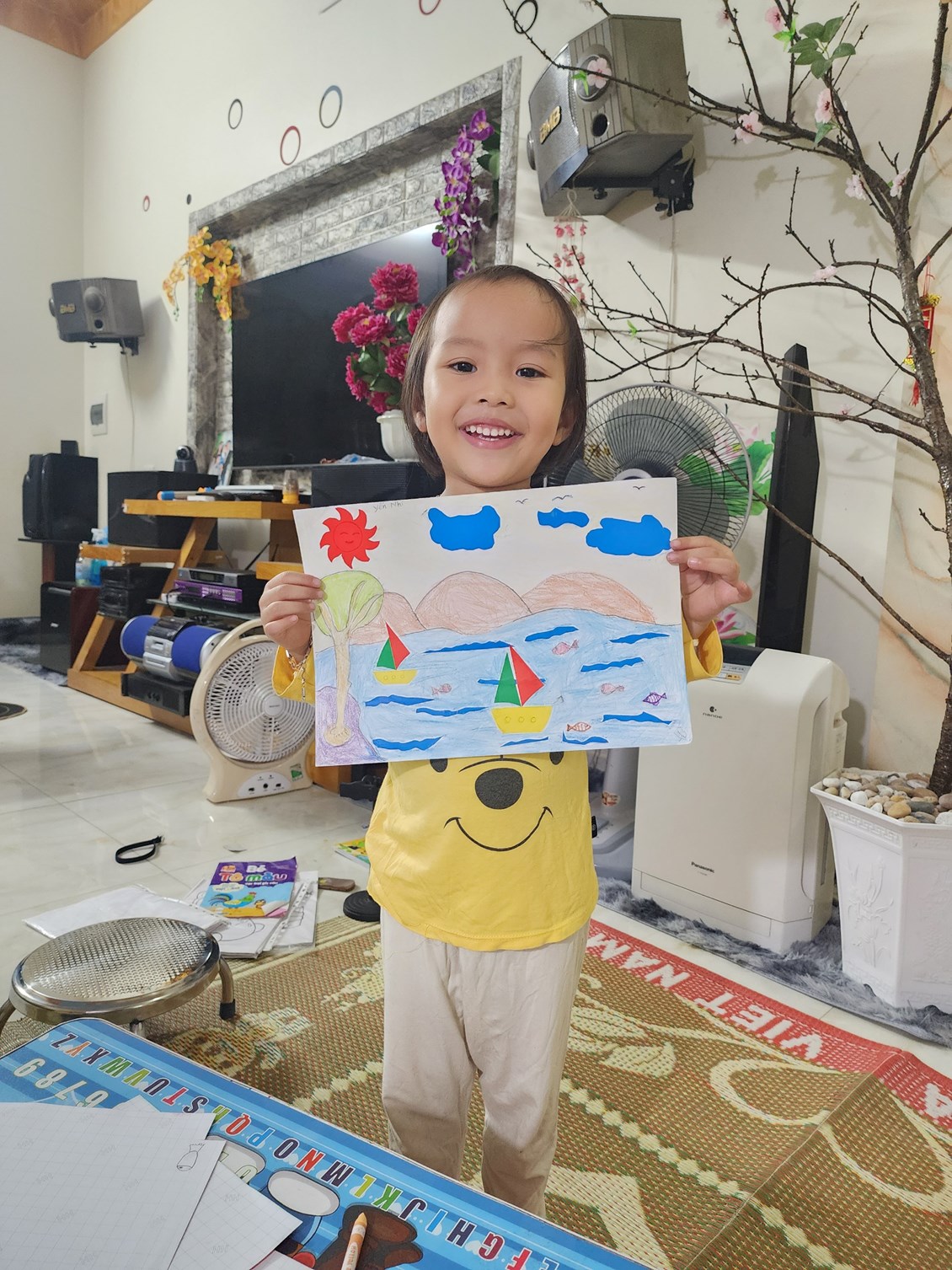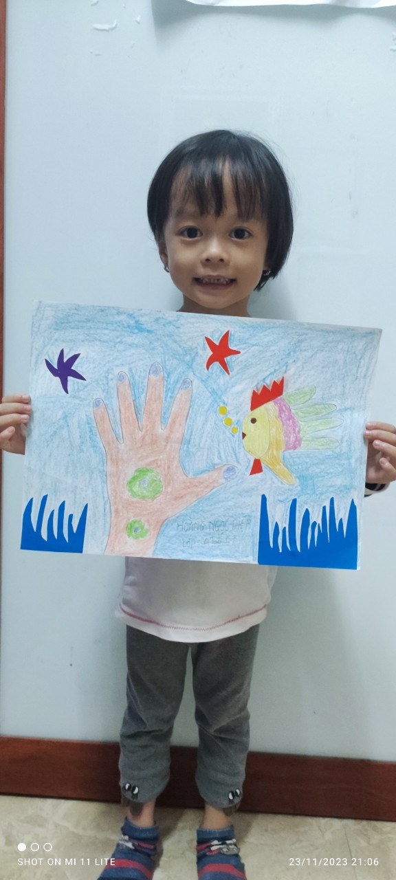 Hình ảnh: Bé Yến Nhi làm bức tranh về biển