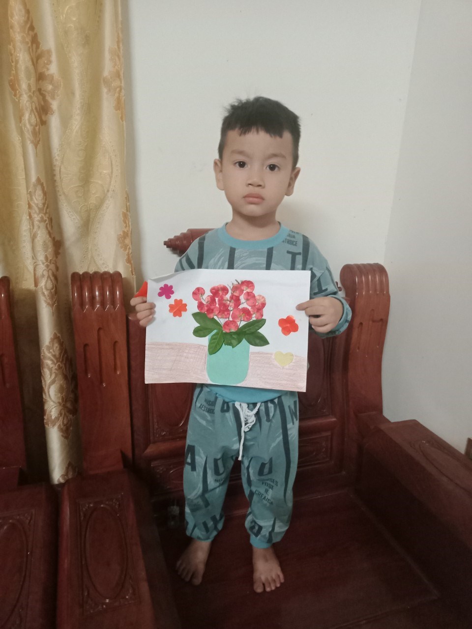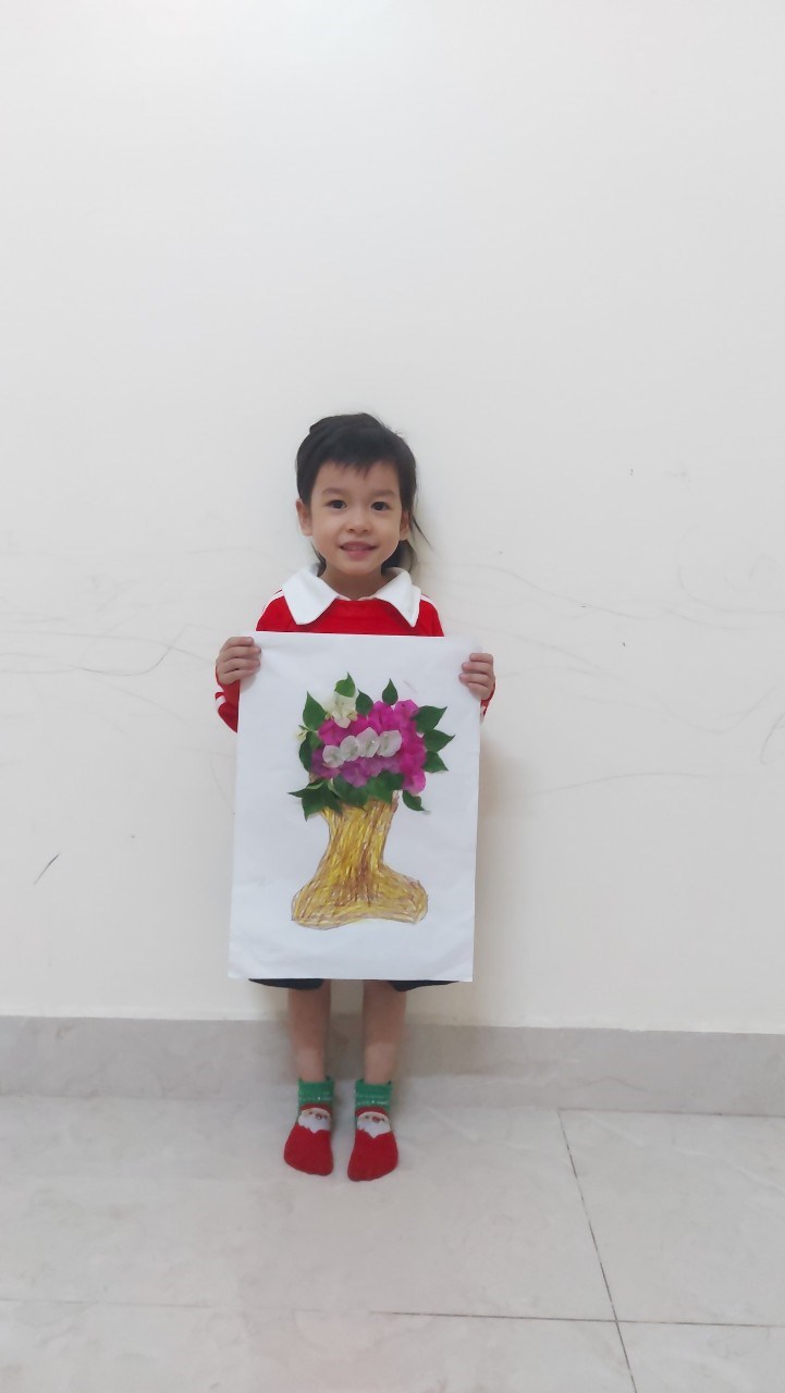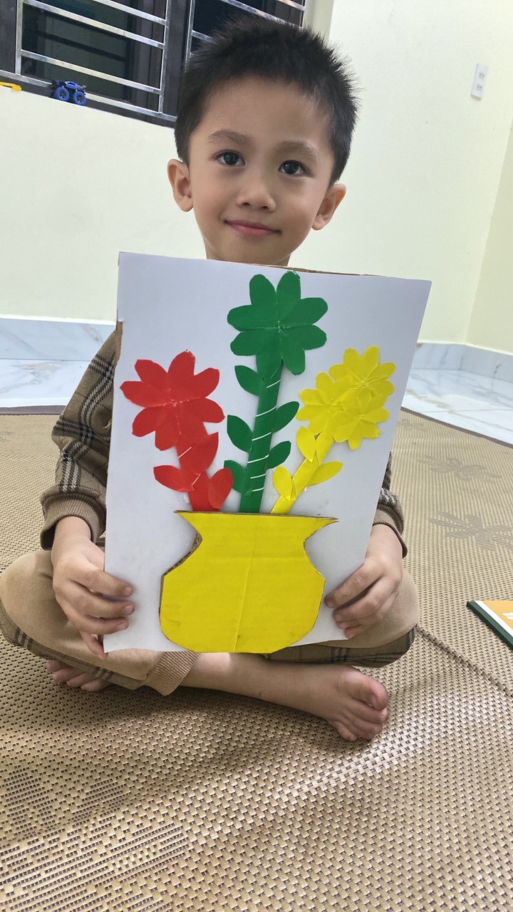 Hình ảnh: Bé Gia Bảo với tranh "cắt dán lọ hoa"