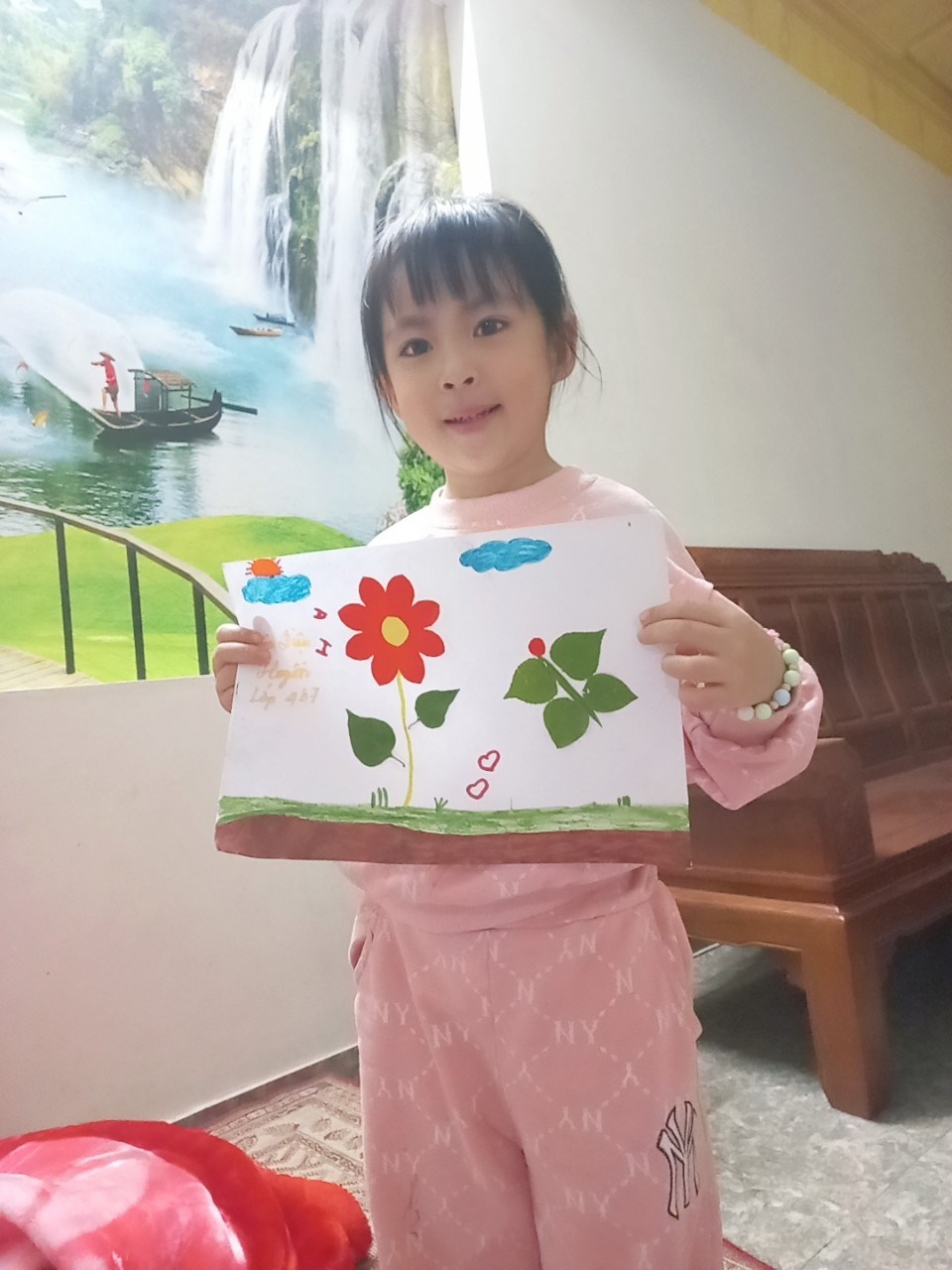Hình ảnh: Bé Thanh Ngọc với bức tranh "Bé yêu hoa"