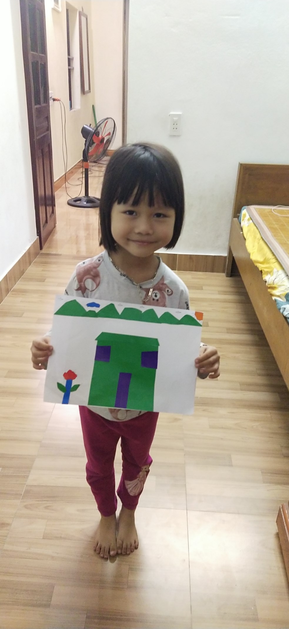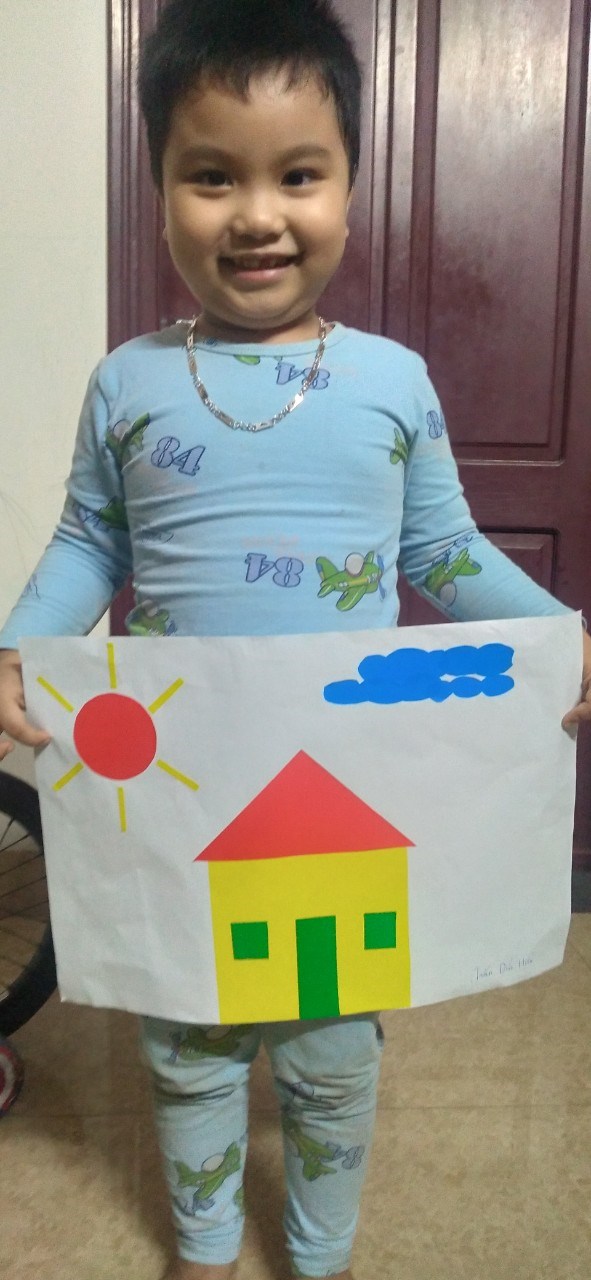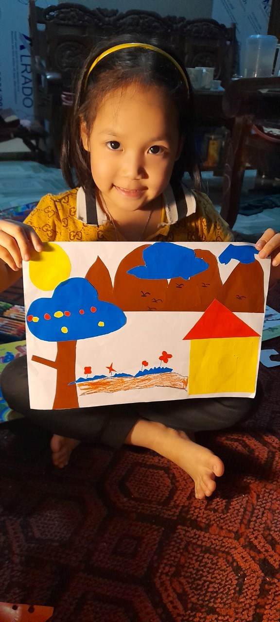 Hình ảnh: Bé Ánh Mai với tranh cắt dán ngôi nhà