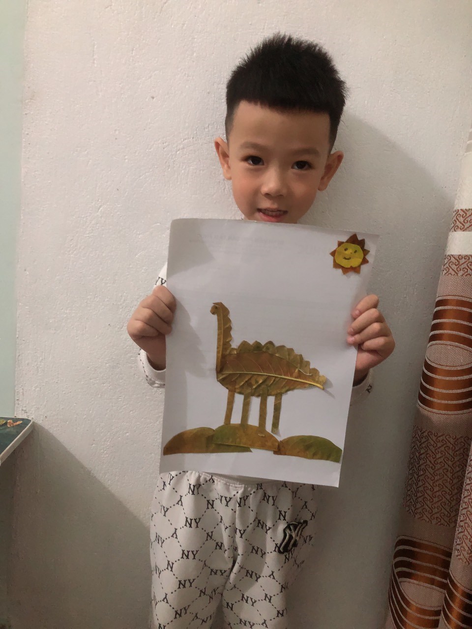Hình ảnh: Bé Đức Lâm với bức tranh con vật từ lá cây