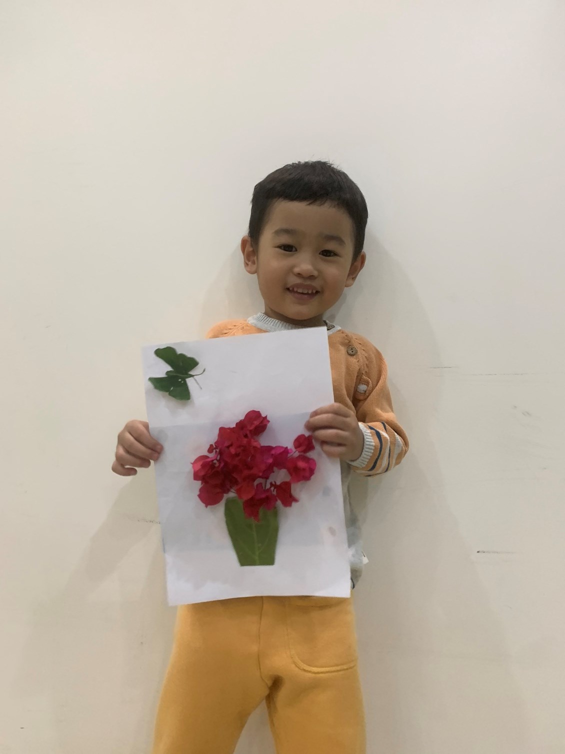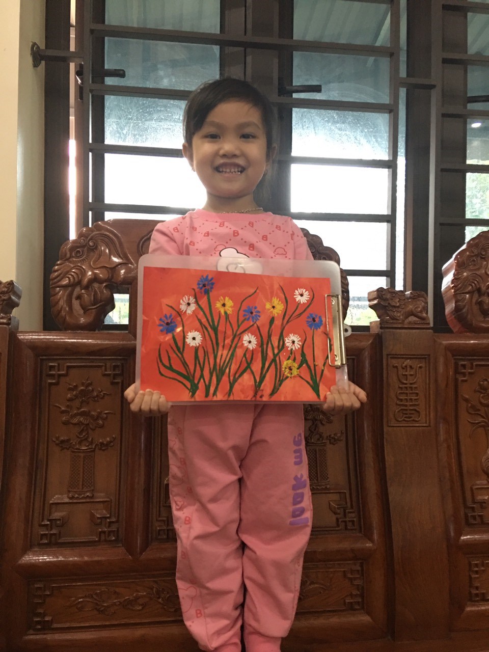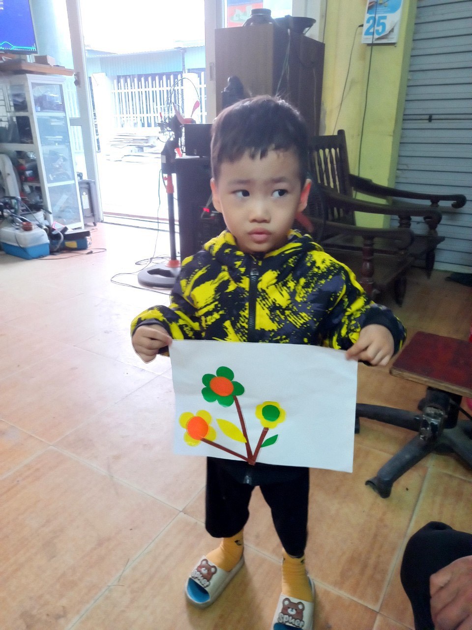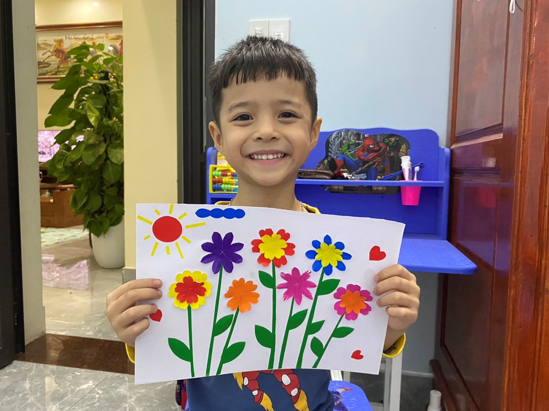 Hình ảnh: Bé Đông Trương với tranh cắt dán hoa