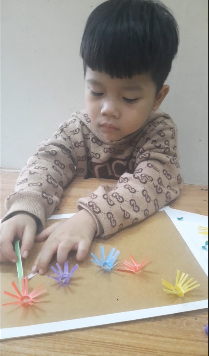 Hình ảnh: Bé Gia Hưng làm tranh hoa từ ống hút