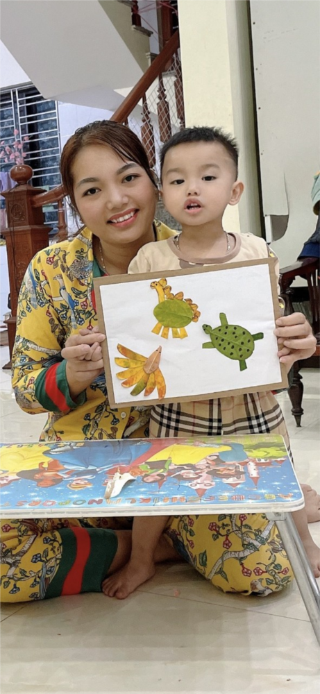 Từ các nguyên học liệu thiên nhiên hết sức đơn giản bố mẹ và các bé đã tạo lên những bức tranh thật đẹp và ngộ nghĩnh. Hoạt động đã khơi dạy sự sáng tạo của các con, giúp các con phát triển tư duy, tình yêu cái đẹp. Trong quá trình thực hiện là lúc bố mẹ rèn cho các con sự tập trung, dạy con sự kiên nhẫn tỉ mỉ, giúp các con phối hợp giữa mắt và tay tốt hơn phát triển vận động tinh cho trẻ. Bố mẹ hãy dành nhiều thời gian cho các con để có những hoạt động bổ ích. Dưới đây là một số hình ảnh về hoạt động của các con tại nhà.