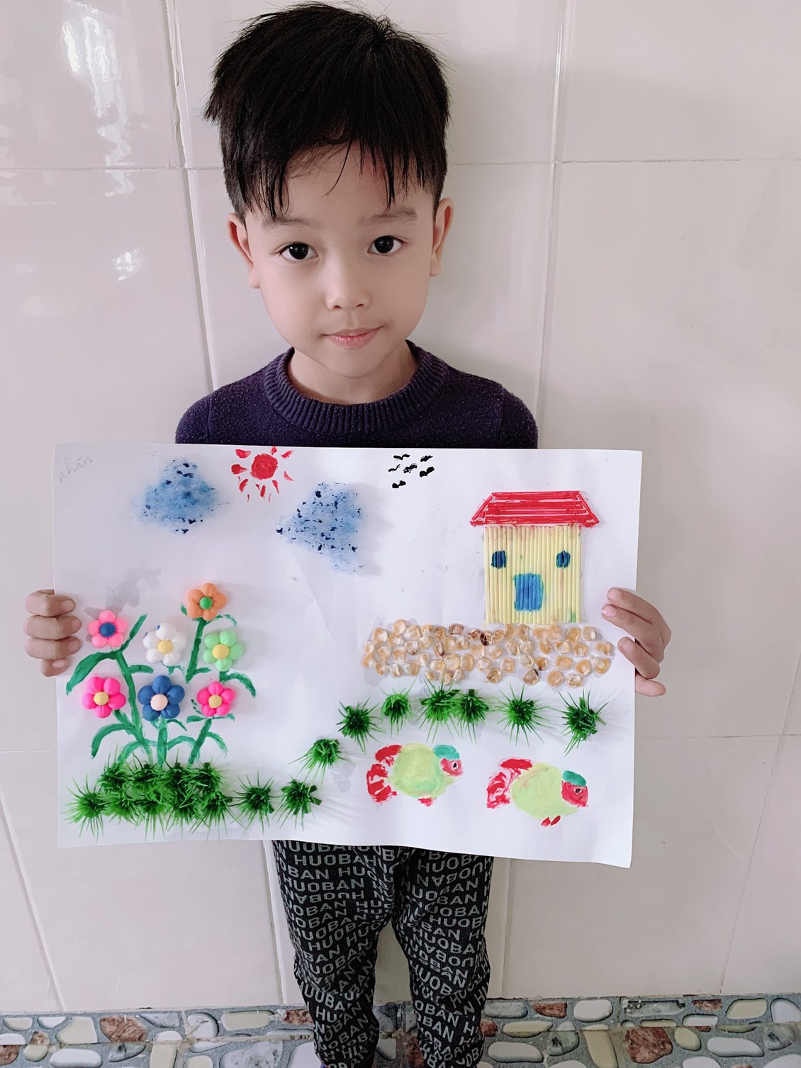 Với mục đích khơi gợi ở trẻ lòng yêu cái đẹp, khả năng sáng tạo nghệ thuật trong hoạt động tạo hình, trường Mầm non Đại Bản tổ chức hội thi “Cha mẹ cùng bé sáng tạo tranh”. Hội thi không chỉ tìm kiếm, phát hiện ra những trẻ có năng khiếu hội hoạ tạo hình mà còn là hoạt động gắn kết tình cảm giữa các bậc cha mẹ với con cái. Hưởng ứng phong trào hội thi, các bậc phụ huynh và trẻ lớp 5 tuổi A7 tham gia rất nhiệt tình. Giáo viên đã nhận được rất nhiều video, hình ảnh hoạt động của bố mẹ cùng con sáng tạo. Có rất tác phẩm thể hiện sự khéo léo, sáng tạo với nhiều nguyên học liệu khác nhau..