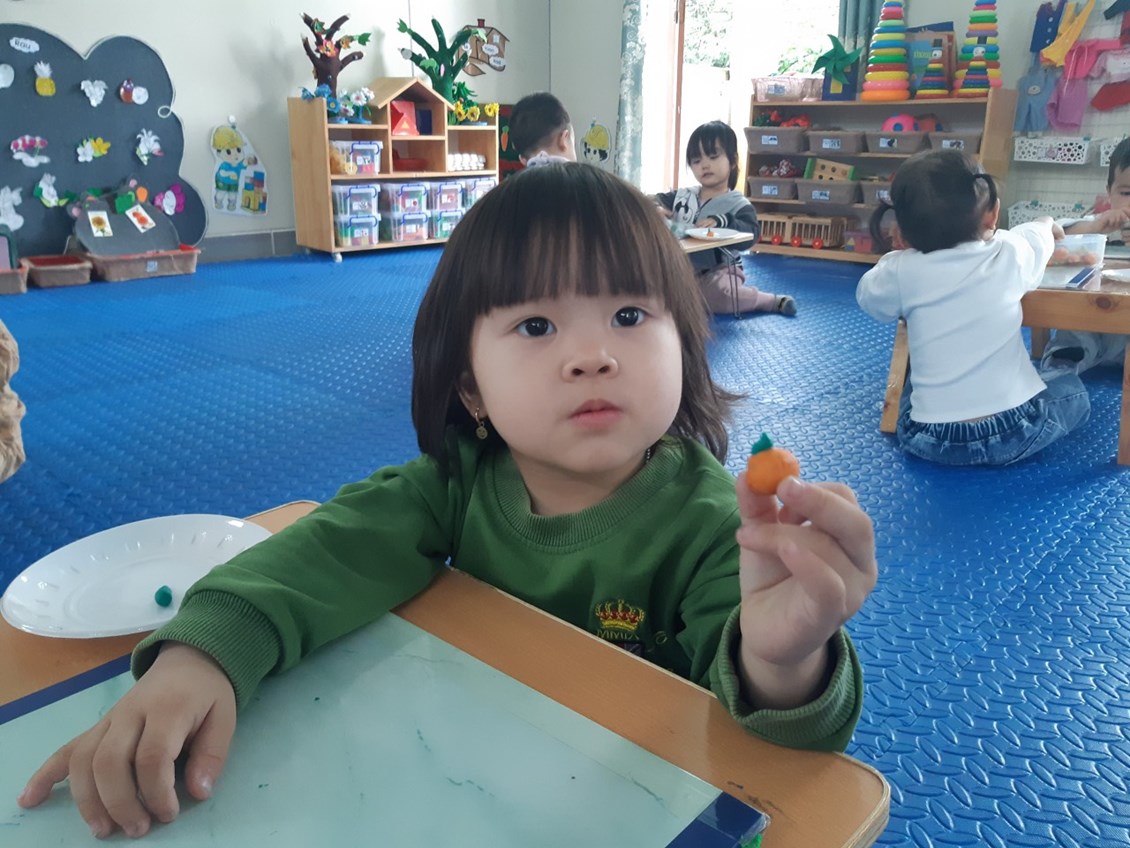 Hãy cùng các với bé lớp nhà trẻ 2 tham gia hoạt động nặn “ nặn quả cam”.