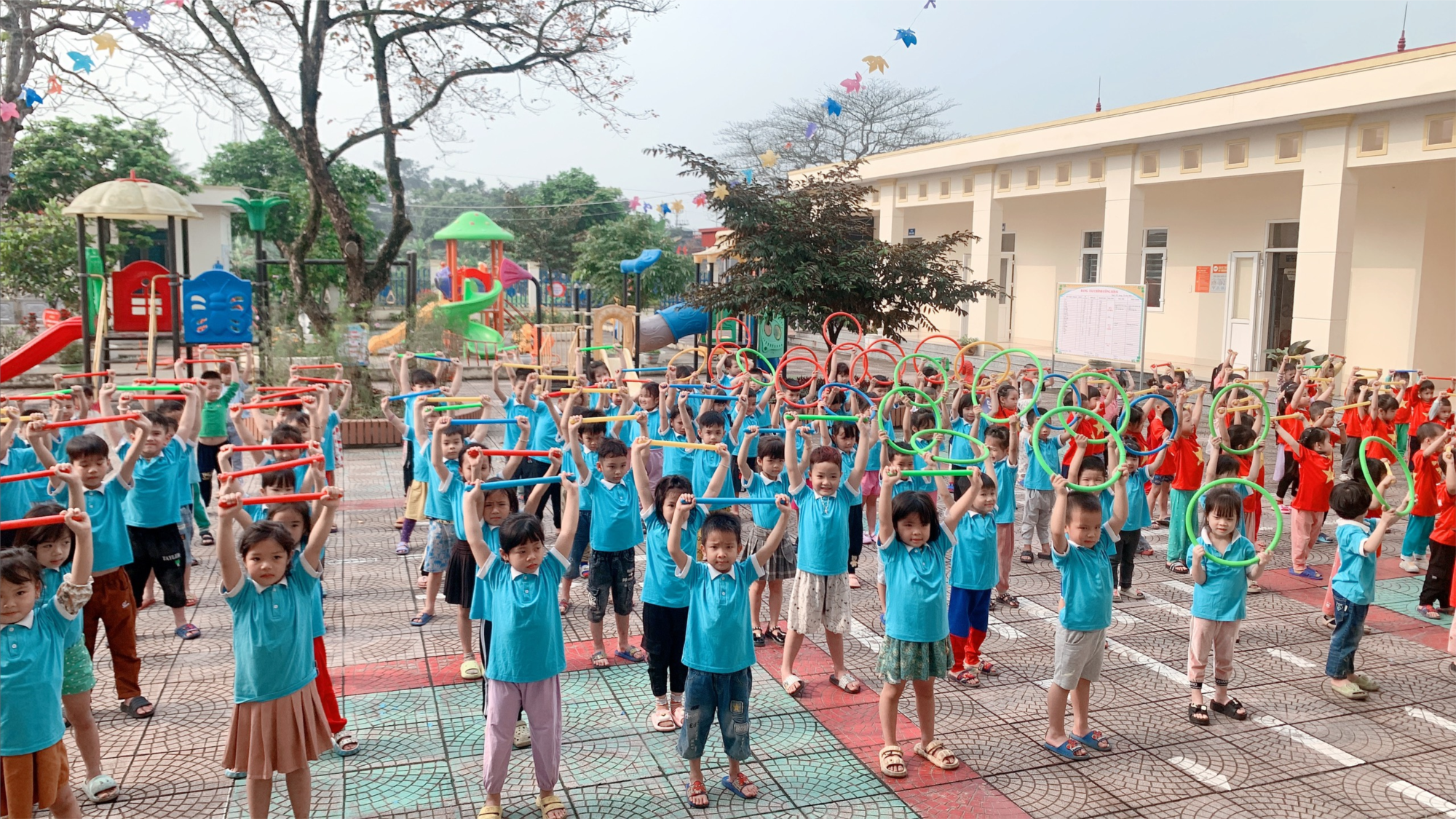 Thể dục buổi sáng là một hoạt động không thể thiếu trong hoạt động hằng ngày của trẻ.