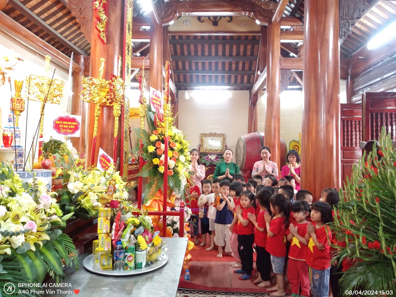 Trong không khí trang nghiêm, linh thiêng các cô giáo và các cháu đã dâng hoa, dâng nén hương để thể hiện được lòng thành kính với các vị thần.