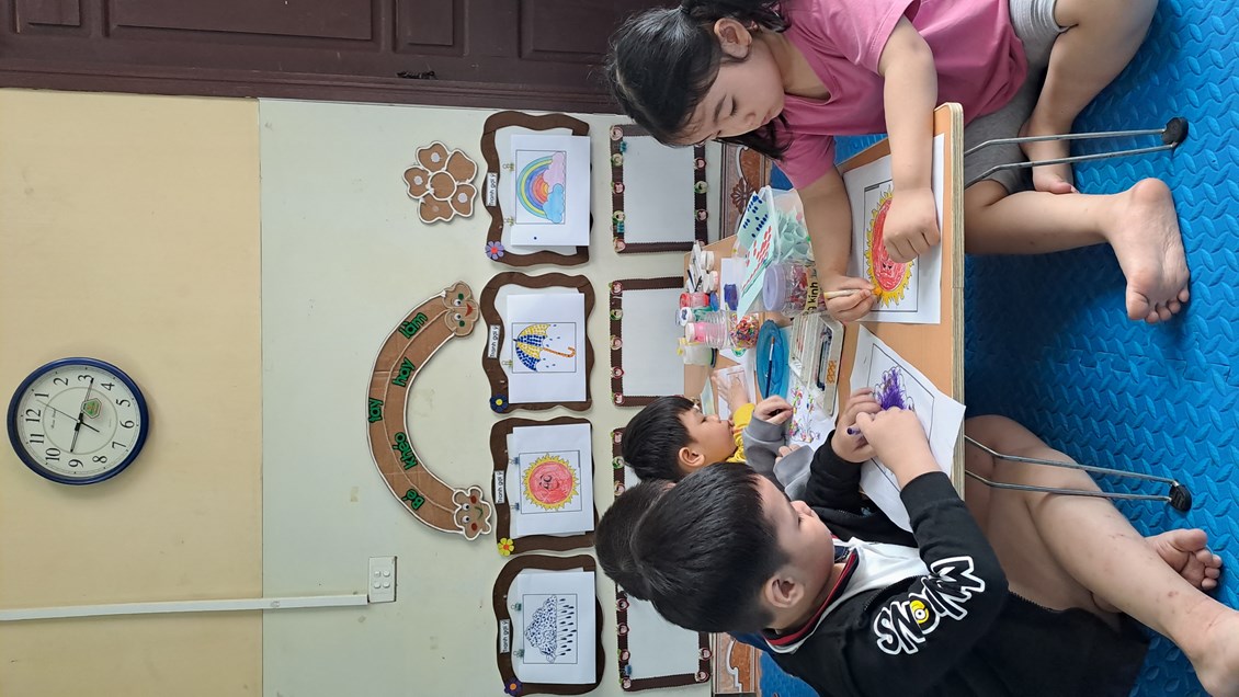 Những họa sĩ tí hon tương lai đang thể hiện ý tưởng của mình.