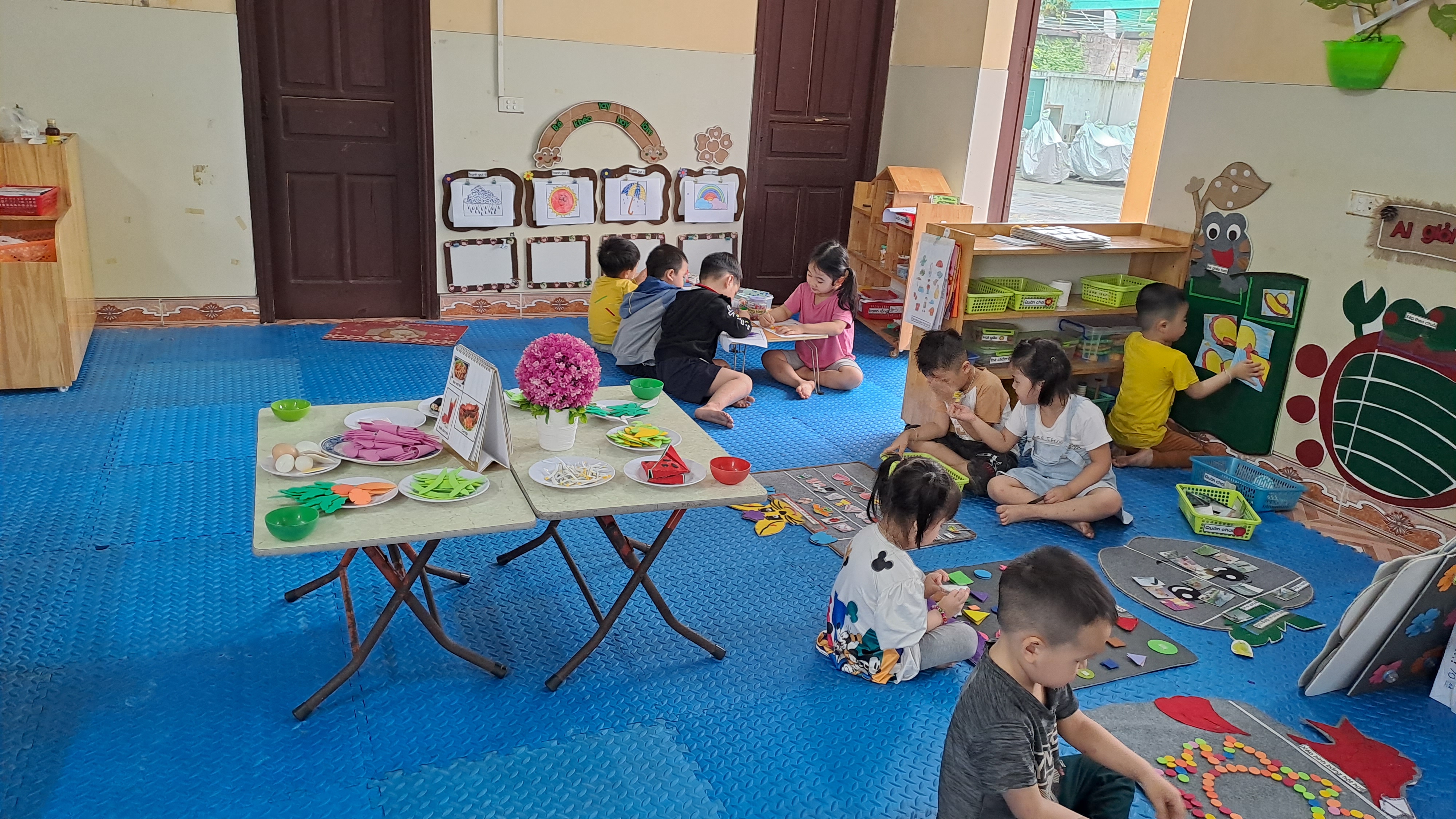Vui chơi là hoạt động chủ đạo của trẻ mầm non, giúp trẻ hoạt động một cách tích cực, vui vẻ và thoải mái, là phương tiện để trẻ tham gia vào " xã hội người lớn " một cách hiệu quả nhất thông qua các góc chơi: Góc nấu ăn, bán hàng, bác sĩ, xây dựng...Bên cạnh đó, hoạt động vui chơi còn cho trẻchia sẻ niềm vui của mình với bạn làm cho thế giới xung quanh trẻ luôn tươi đẹp và rộng lớn hơn, tăng khả năng phát triển thẩm mĩ, thể chất, nhận thức, ngôn ngữ qua các góc chơi: góc học tập, góc sách, góc tạo hình, góc kĩ năng...
