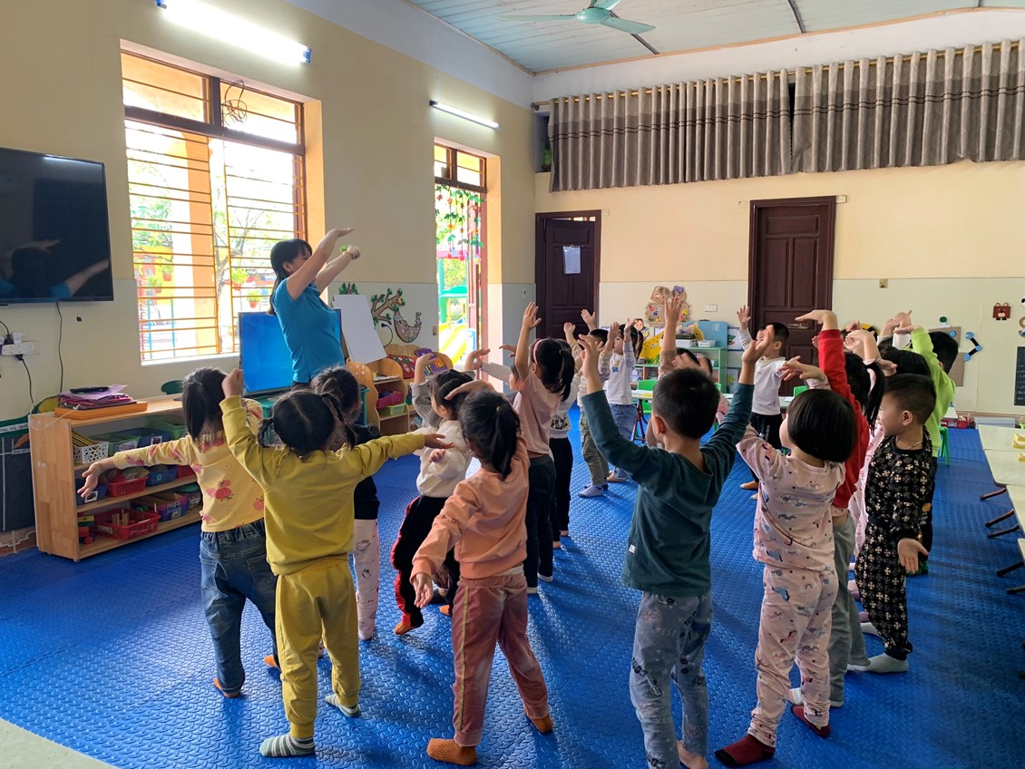 Hình ảnh: Cô và trẻ chơi trò chơi "Gieo hạt - trồng cây"