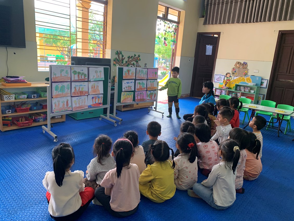 Hình ảnh: Trẻ trưng bày sản phẩm và nhận xét tranh của bạn