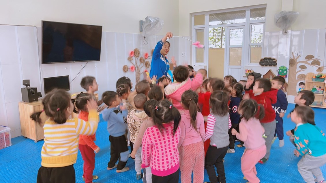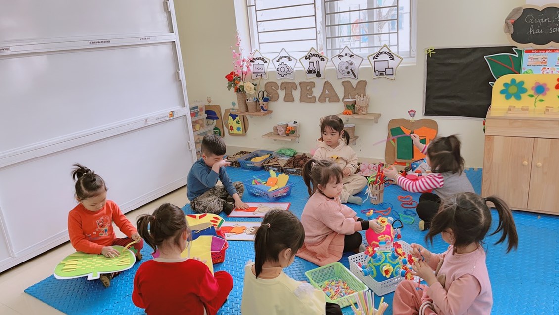 Trong góc vận động được cô giáo sáng tạo nhiều trò chơi vận động tinh khác nhau giúp trẻ hứng thú, tích cực tham gia " học và chơi" cùng các bạn.