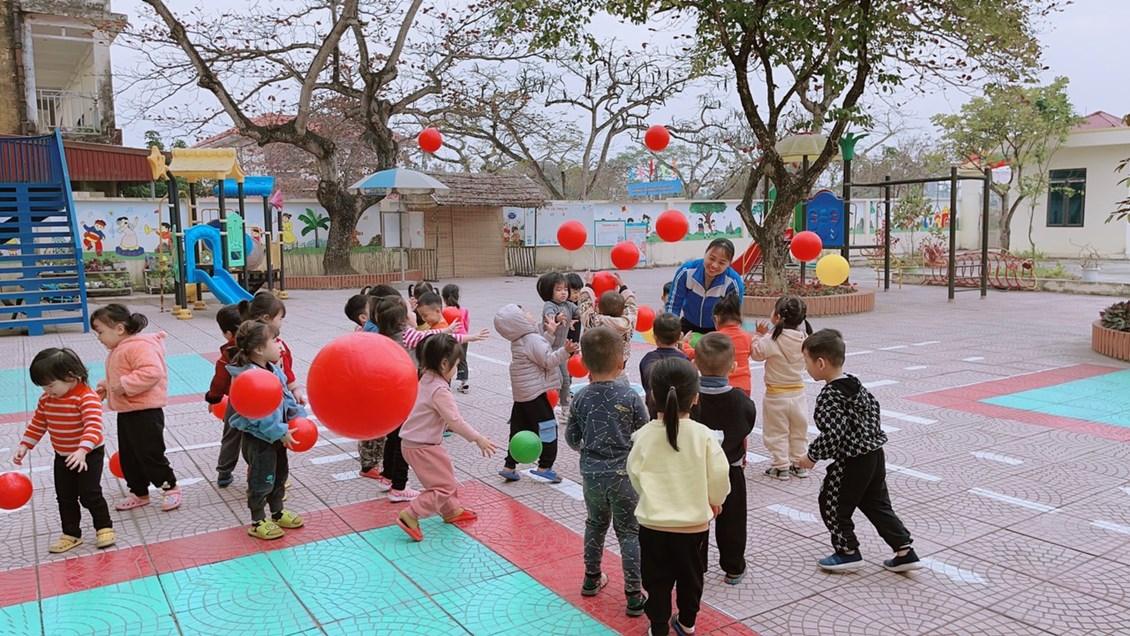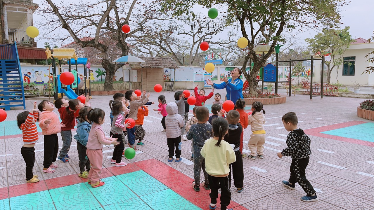 Phát triển vận động cho trẻ được tổ chức ở hoạt động ngoài trời.