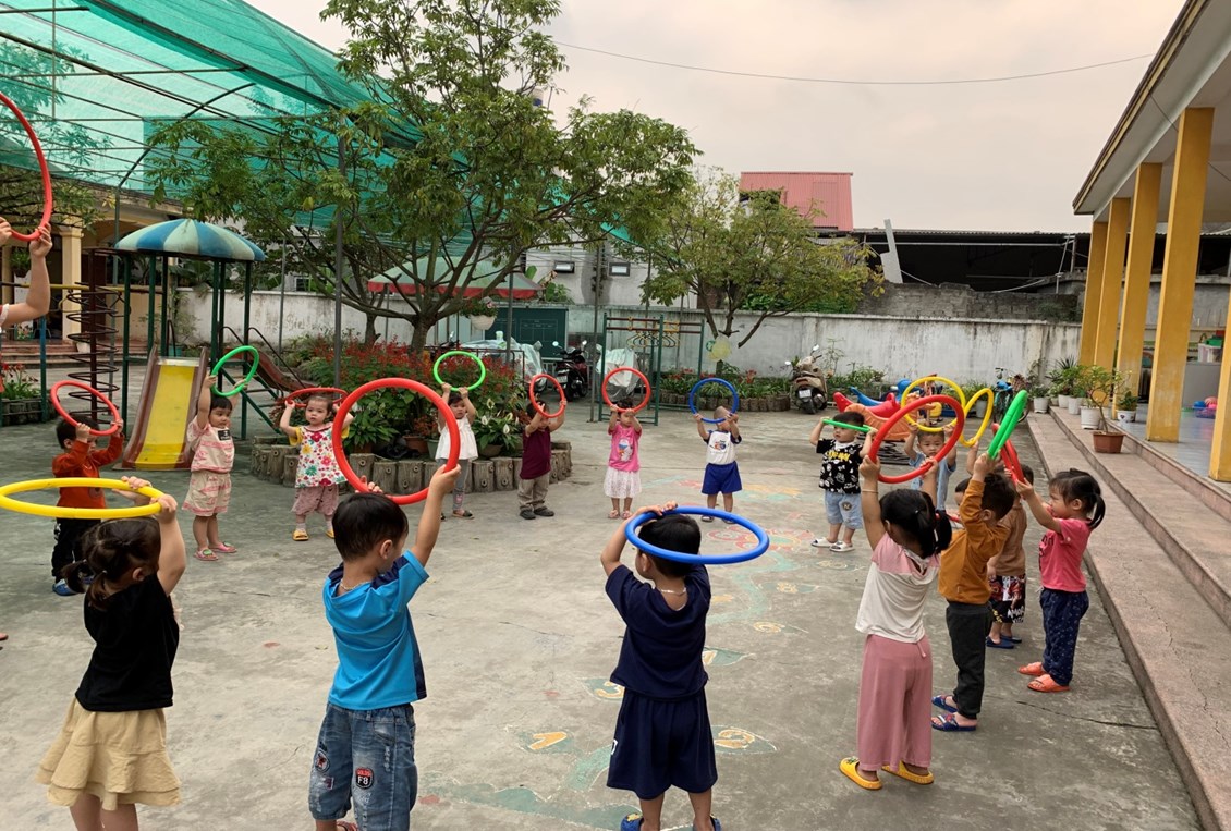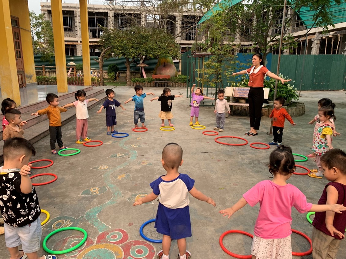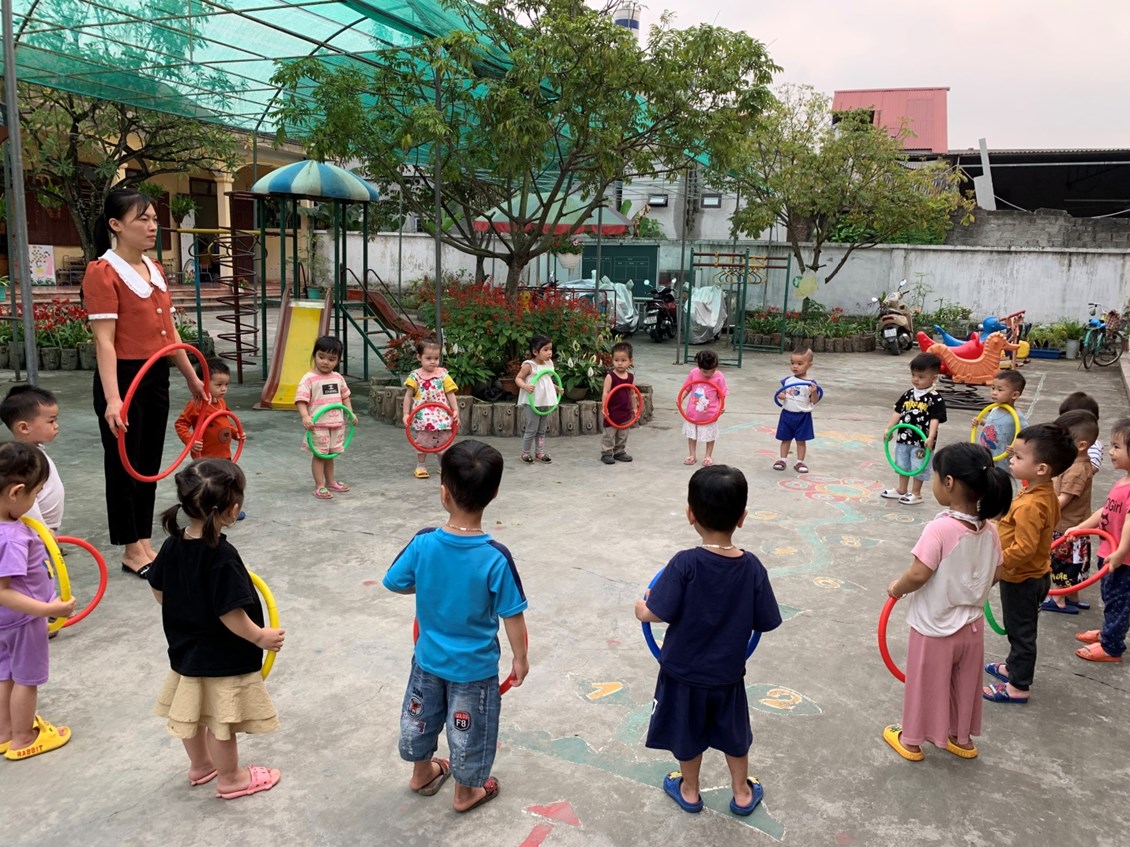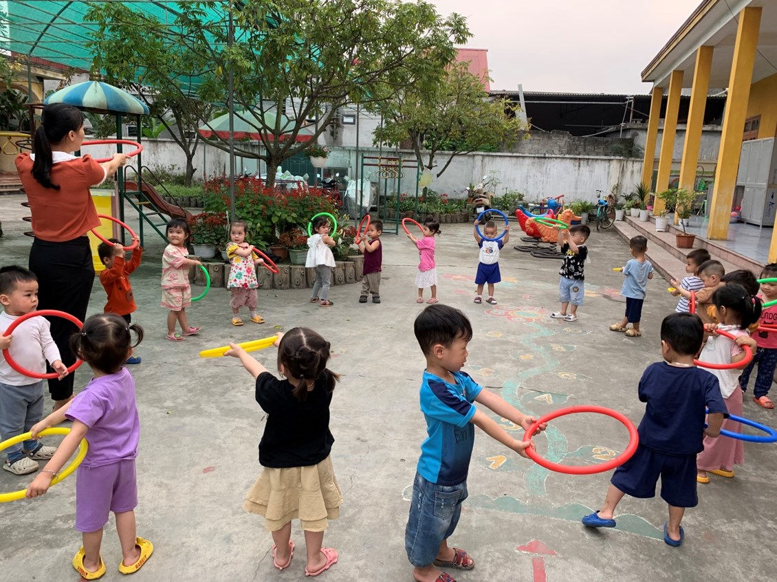 Nhận thức được tầm quan trọng của thể dục sáng đối với trẻ, các bé lớp Nhà trẻ 2 luôn tổ chức thực hiện và duy trì tốt hoạt động thể dục sáng cho trẻ hình thức phong phú, như thể dục theo nhạc, vòng, phù hợp với chủ đề thực hiện chương trình, giúp trẻ hứng thú luyện tập. Việc duy trì thể dục sáng đã hình thành ở trẻ một thói quen, trẻ chủ động thực hiện và xem như một hoạt động không thể thiếu mỗi ngày đến trường của trẻ.