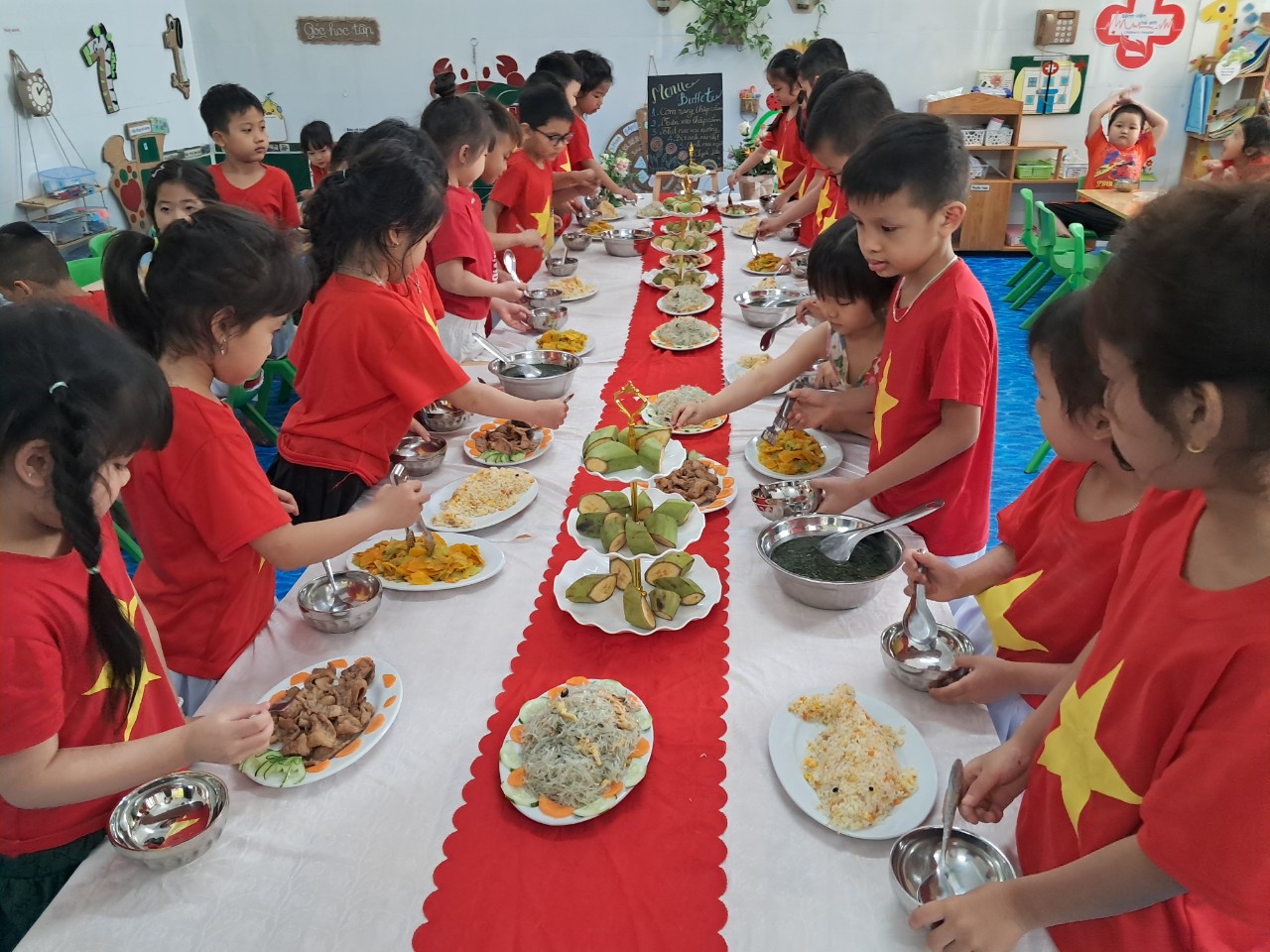 Tiệc buffet cho các bé mầm non tại trường là một trong những hoạt động đầy ý nghĩa và giá trị, được phụ huynh cũng như các bé nhiệt tình ủng hộ. Đây không những là dịp giúp bé có thể thưởng thức các món buffet cho trẻ em ngon – bổ dưỡng, mà nó còn dạy cho bé rất nhiều điều trong phép lịch sự khi ăn uống, kỹ năng sống hữu ích.