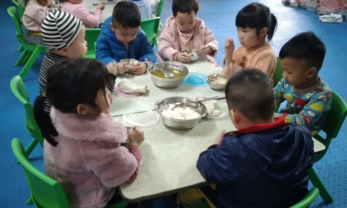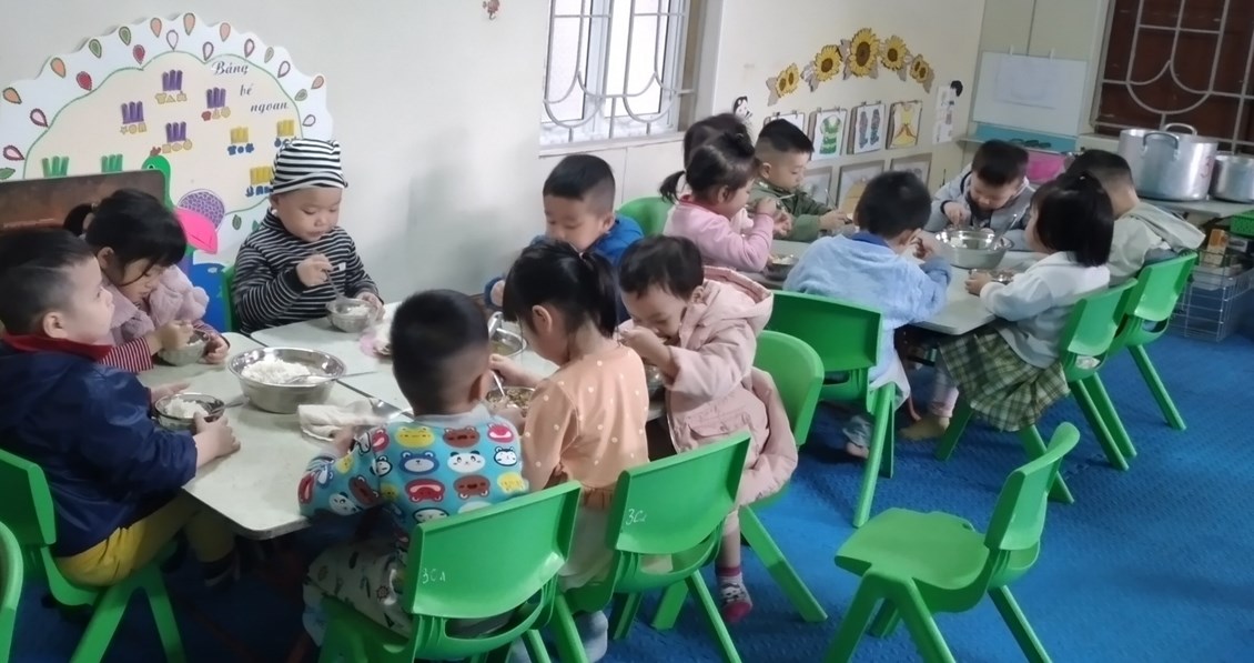 trẻ vào bữa ăn. Trẻ được vệ sinh sạch sẽ, mát mẻ. Các đồ dùng phục vụ bữa ăn được
