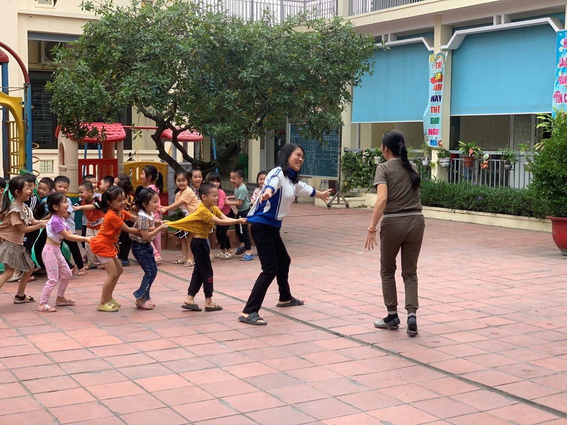 Tham gia hoạt động ngoài trời giúp trẻ được hít thở không khí trong lành, được tiếp xúc trực tiếp với sự vật hiện tượng xung quanh, được tham gia vào các trò trời khiến trẻ tăng cường thể lực và thỏa mãn nhu cầu tìm tòi khám phá.