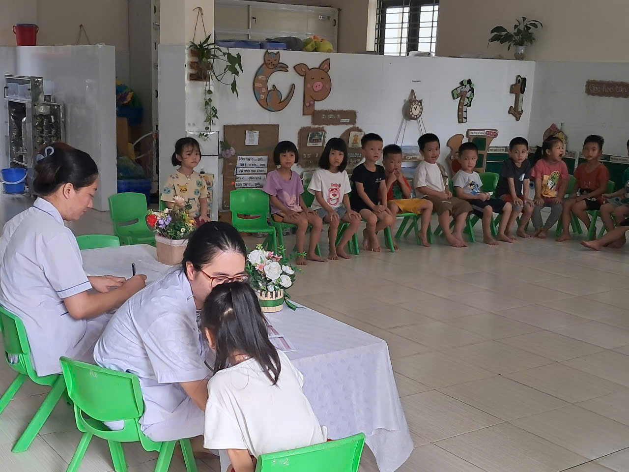 Sau đây là một số hình ảnh khám sức khỏe của lớp bé, mời ba mẹ cùng xem nhé!