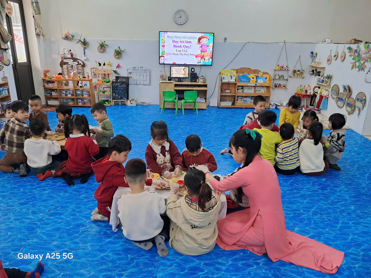 Không chỉ được thử sức với công việc làm bánh, các bé còn được rèn luyện sự khéo léo, tính kiên nhẫn và tinh thần làm việc nhóm. Những ánh mắt lấp lánh niềm vui, những đôi bàn tay nhỏ nhắn thoăn thoắt nặn bột, những tiếng cười rộn ràng đã làm cho không gian lớp học tràn ngập sự ấm áp và hạnh phúc.