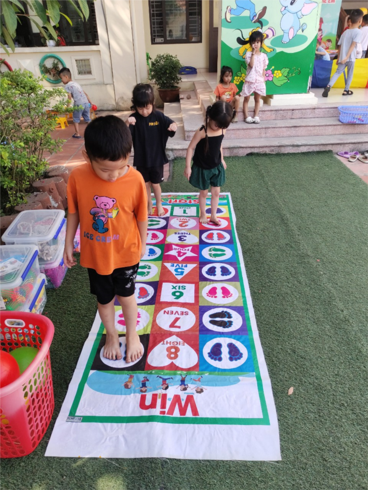 Sau đây là một số hình ảnh bé tham gia hoạt động ngoài trời của các bé lớp 5 tuổi A2 trường mầm non Đại Bản: