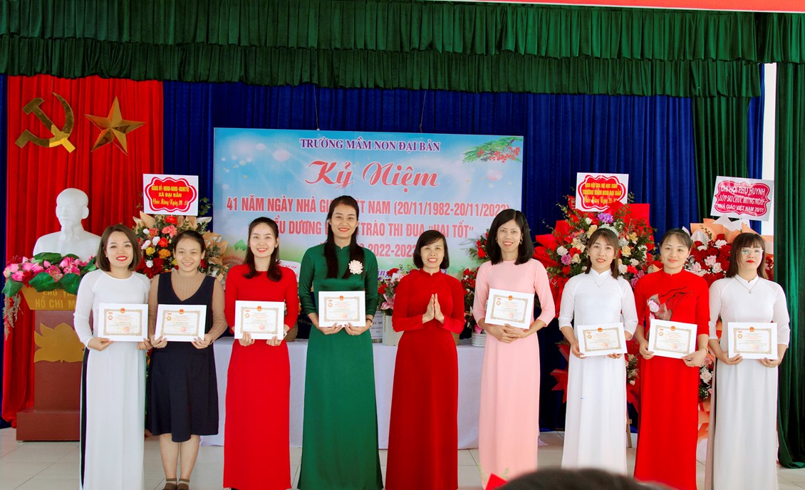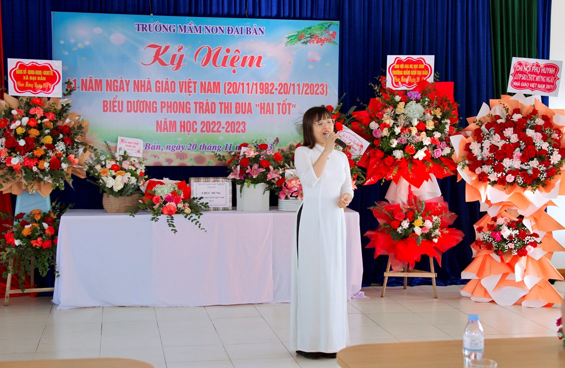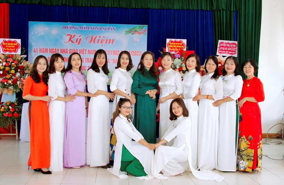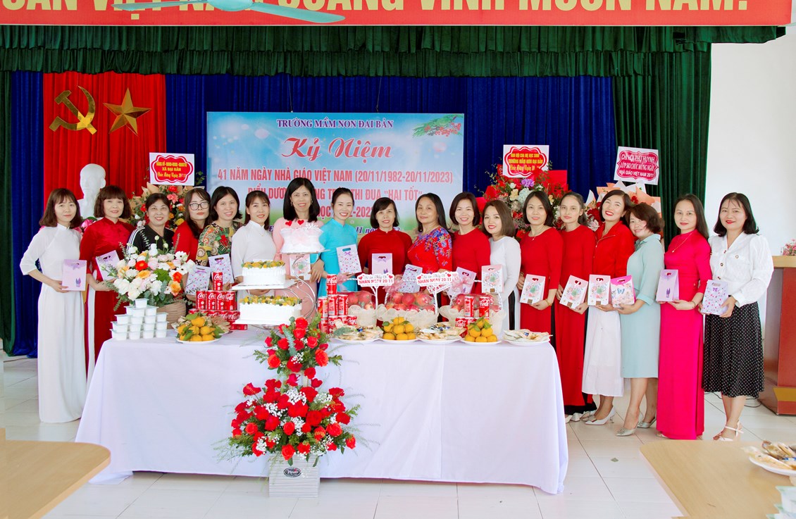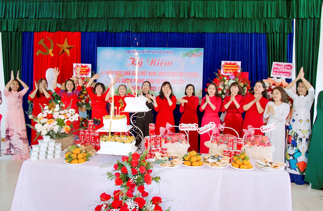 Ngày 20/11 hàng năm không chỉ là ngày hội truyền thống của các Nhà giáo Việt Nam, của toàn dân chăm lo cho sự nghiệp Giáo dục - Đào tạo mà còn là ngày cả xã hội thể hiện tình cảm, tấm lòng trân trọng, tri ân đối với đội ngũ các thầy giáo, cô giáo, những người có đóng góp to lớn cho sự nghiệp trồng người và trong công cuộc xây dựng, bảo vệ Tổ quốc. Đồng thời, đây cũng là dịp để động viên tập thể cán bộ, giáo viên, nhân viên nhà trường tiếp tục phát huy hơn nữa những truyền thống quý báu của Nhà giáo Việt Nam, xây dựng trường Mầm non Đại Bản xứng đáng là trường chuẩn Quốc gia mức độ 1.