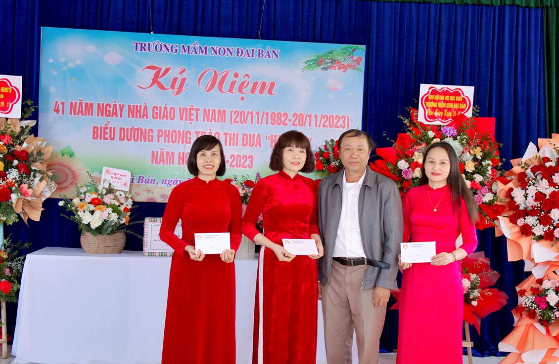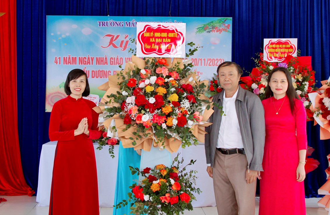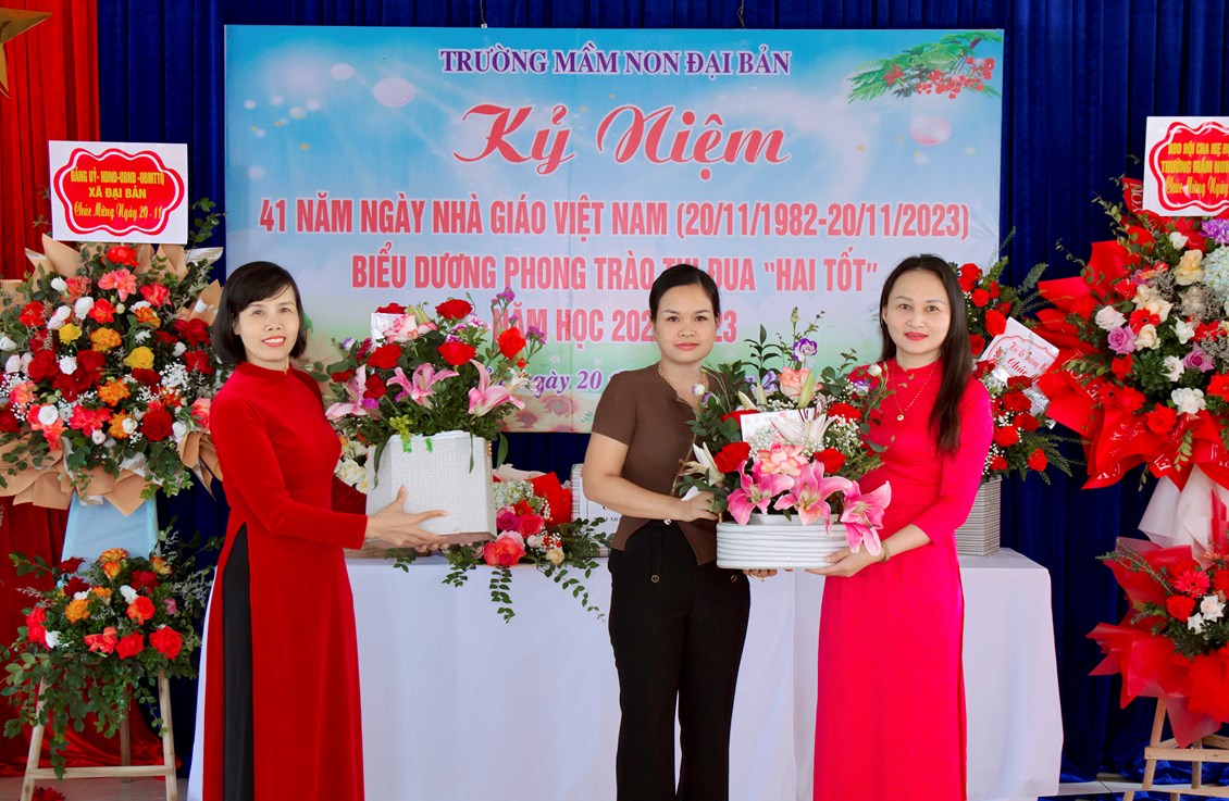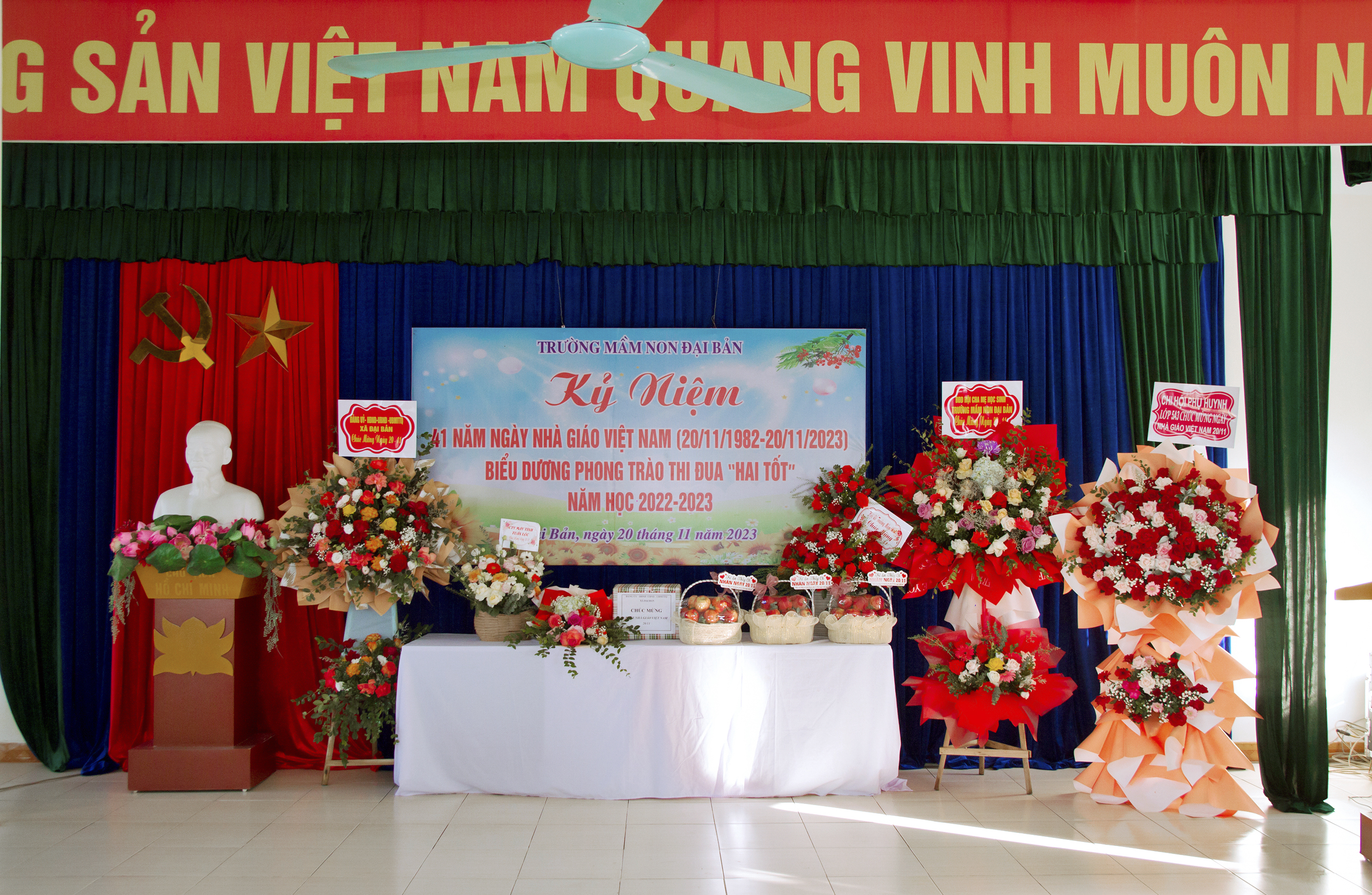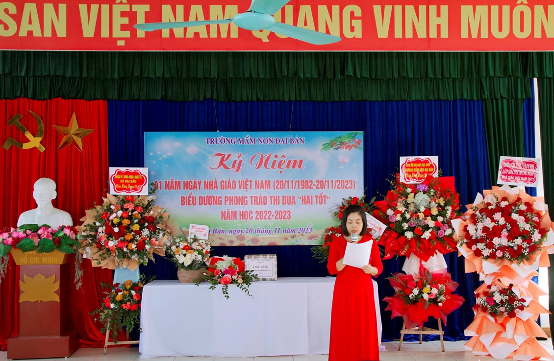 Ngày 20/11 hàng năm không chỉ là ngày hội truyền thống của các Nhà giáo Việt Nam, của toàn dân chăm lo cho sự nghiệp Giáo dục - Đào tạo mà còn là ngày cả xã hội thể hiện tình cảm, tấm lòng trân trọng, tri ân đối với đội ngũ các thầy giáo, cô giáo, những người có đóng góp to lớn cho sự nghiệp trồng người và trong công cuộc xây dựng, bảo vệ Tổ quốc. Đồng thời, đây cũng là dịp để động viên tập thể cán bộ, giáo viên, nhân viên nhà trường tiếp tục phát huy hơn nữa những truyền thống quý báu của Nhà giáo Việt Nam, xây dựng trường Mầm non Đại Bản xứng đáng là trường chuẩn Quốc gia mức độ 1.