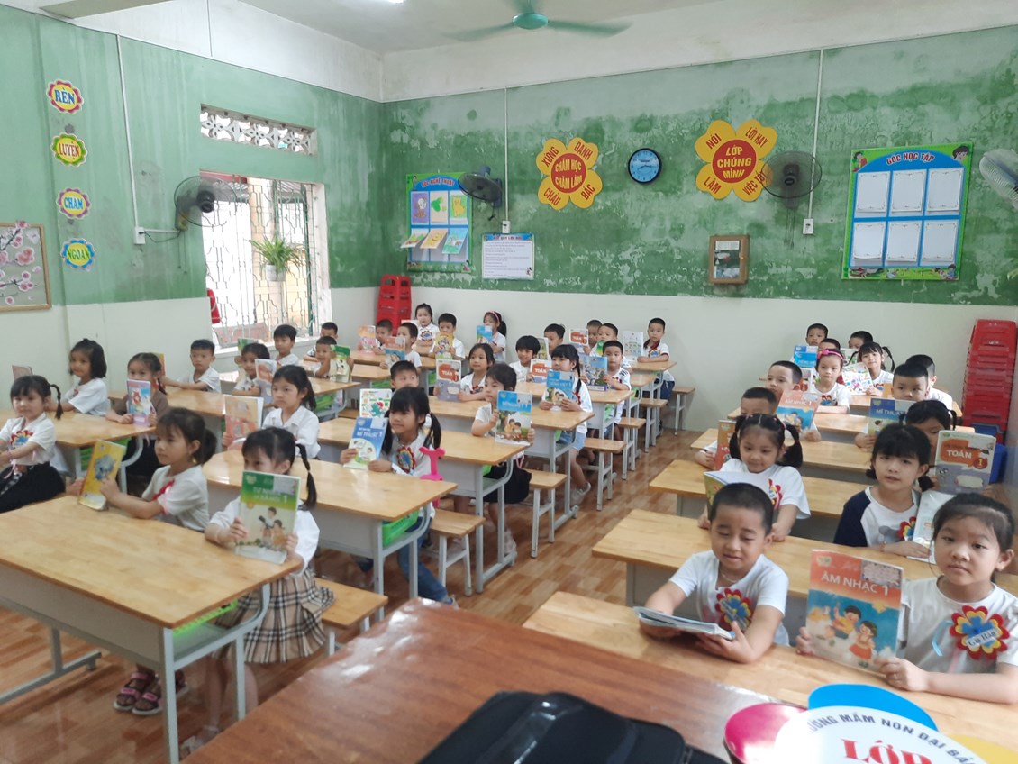 Được làm quen với một số hoạt động, các đồ dùng học tập lớp 1, được giao lưu trò chuyện với các cô giáo và anh chị học sinh ở trường tiểu học.