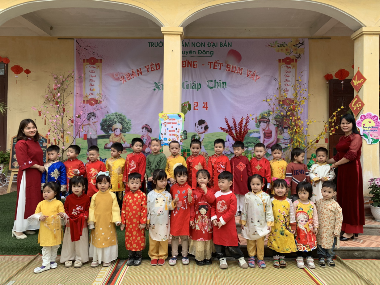 Hòa chung trong không khí rộn ràng chào đón năm mới xuân Giáp Thìn 2024, Trường MN Đại Bản tổ chức một chuỗi các sự kiện, hoạt động thiết thực. Và chương trình “Xuân yêu thương - tết sum vầy” là một trong những chuỗi sự kiện chào đón năm mới nhằm đem lại không khí vui tươi, phấn khởi cho cô và trẻ trong nhà trường, tạo được những dấu ấn tốt đẹp tới trẻ. Đồng thời, thông qua chương trình này cũng thể hiện về công tác phối kết hợp giữa Ban giám hiệu nhà trường với Ban đại diện cha mẹ học sinh, giữa giáo viên với cha mẹ các cháu và sự quan tâm của Cấp ủy Đảng chính quyền địa phương về công tác chăm sóc và giáo dục trẻ mầm non.