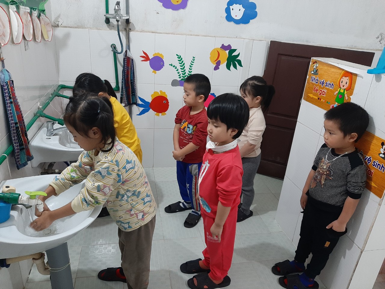 Công tác chăm sóc và giáo dục vệ sinh cá nhân cho trẻ mầm non là một việc rất quan trọng. Việc giữ gìn vệ sinh cá nhân tốt mang lại hiệu quả đáng kể trong việc phòng các bệnh: cảm cúm, tay chân miệng,... cho bản thân trẻ cũng như hạn chế lây lan cho người khác. Vệ sinh cho trẻ là phòng tránh được bệnh tật, tăng cường sức khỏe hình thành những kỹ năng sống cơ bản đầu tiên, nhờ có sức khỏe mà giúp trẻ phát triển về đức, trí, thể, mĩ. Sau đây là những hình ảnh các bạn nhỏ lớp 4 tuổi B7 rèn thói quen vệ sinh sạch sẽ khi ở trường, lớp: