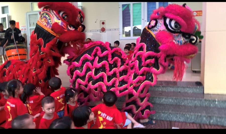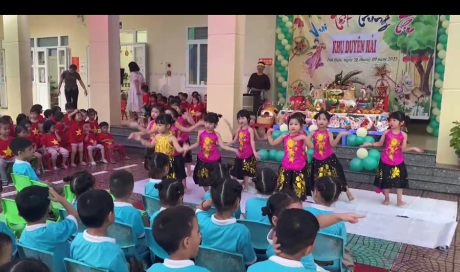Các bé không chỉ được phá cỗ liên hoan mà còn được tham gia nhiều hoạt động vui chơi, sinh hoạt tập thể, chơi các trò chơi, hát về ngày tết trung thu.