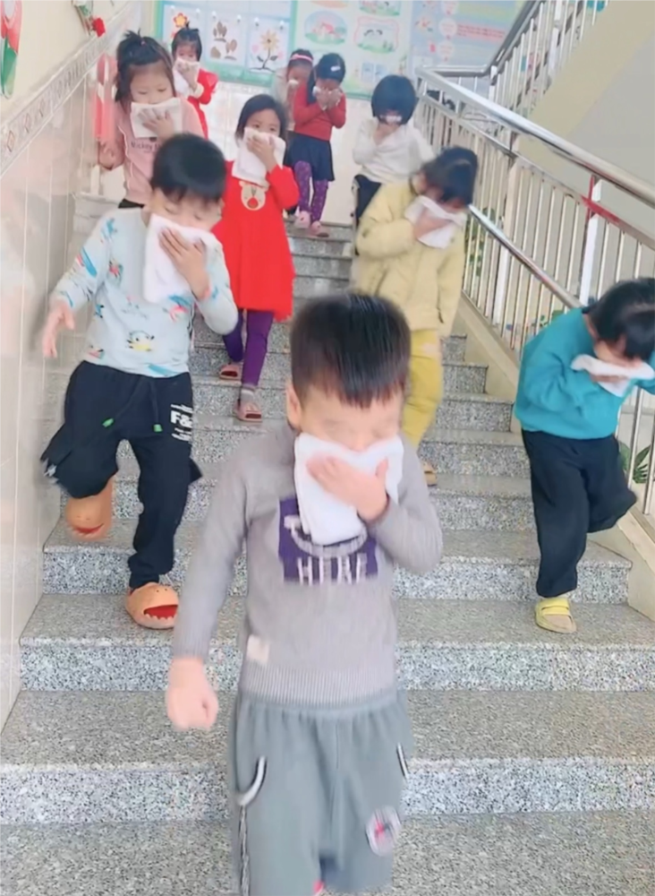 Kỹ năng 5: Hãy lưu ý với bé rằng, trong đám cháy không chỉ lửa nguy hiểm mà khói cũng là nguyên nhân dẫn đến tình trạng ngạt thở. Để tránh cho bé bị hít phải nhiều khói, hãy dạy bé dùng khăn hoặc miếng vải nhúng nước lạnh che lên mũi và miệng. Sau đó di chuyển thật nhanh đến nơi an toàn bằng tư thế bò sát xuống mặt đất.