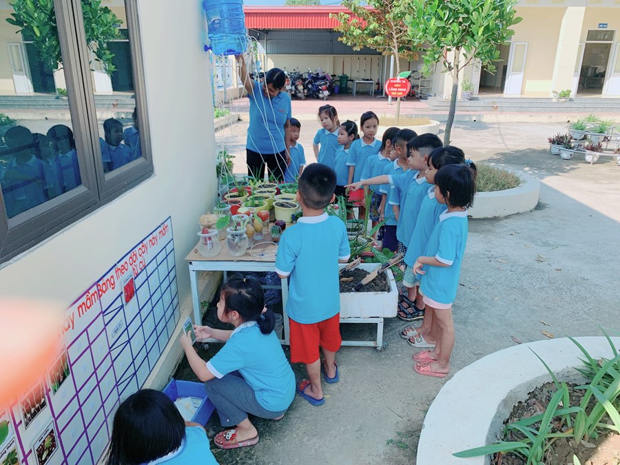 Bé quan sát sự phát triển của cây