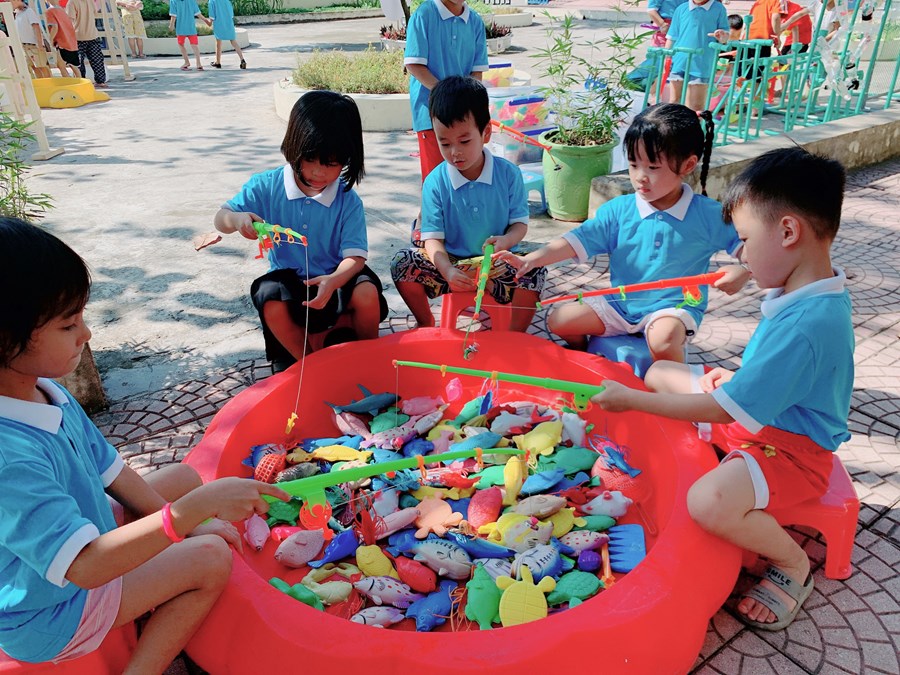 Một số hình ảnh tổ chức hoạt động chơi ngoài trời của trẻ: