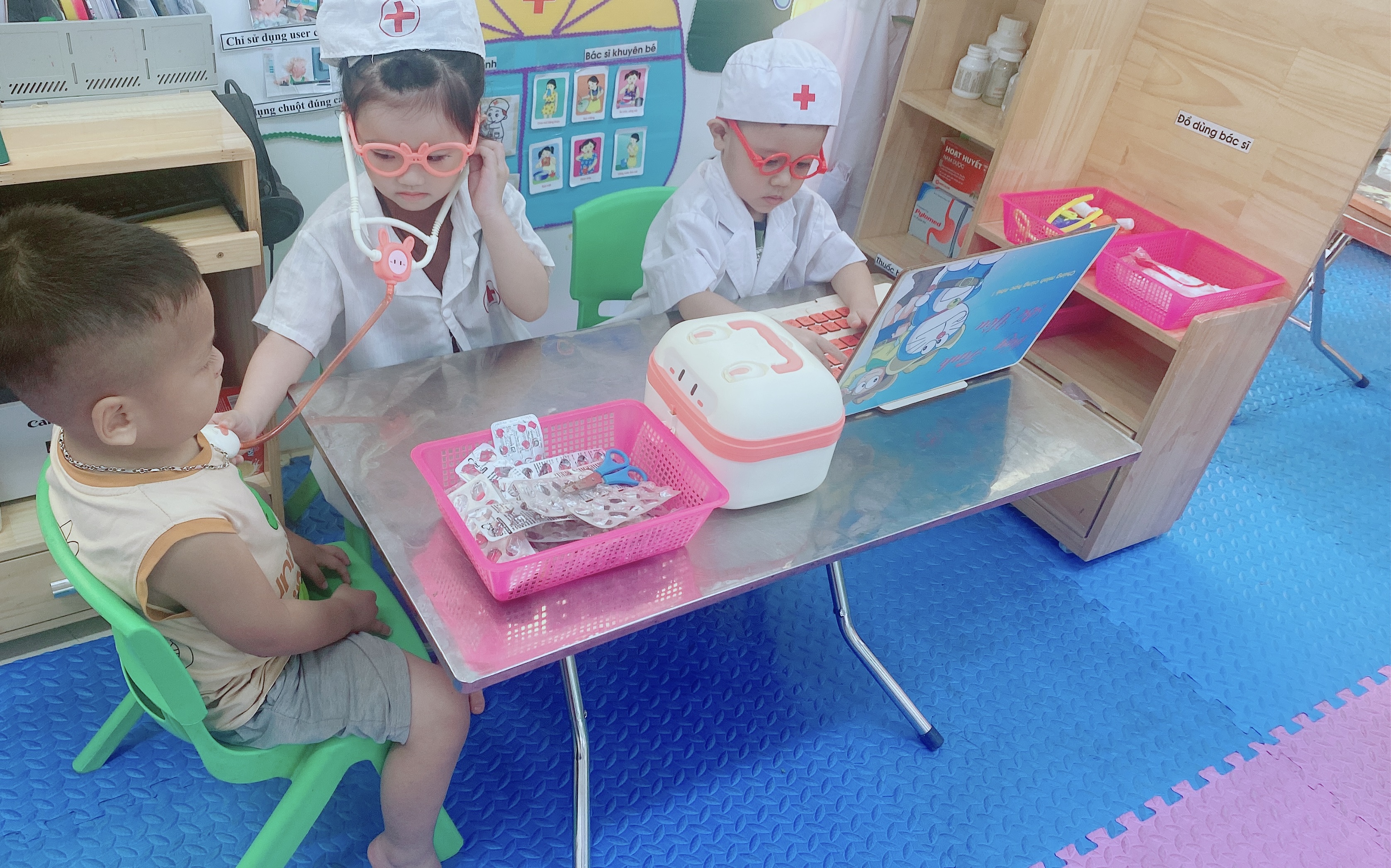 Trẻ sau những giờ hoạt động học chính sẽ tham gia vào các trò chơi hoạt động góc ở trong lớp góc phân vai, góc xây dựng , góc học tập , sách truyện …. Trẻ sẽ tự phân vai chơi cho nhau theo ý của mình và trẻ nào cũng được tham gia hoạt động ở các góc một cách hứng thú , phát triển ở trẻ các kỹ năng sống như bán hàng , mẹ con ,cô giáo , bác sỹ , hay các bác kỹ sư xây dựng các công trình, làm tranh ảnh , làm sách ….. .Từ đó trẻ sẽ phát triển toàn diện và hình thành nhân cách ban đầu cho trẻ . Trẻ cùng nhau tham gia gia giao lưu trao đổi với bạn bè trong lớp và biết quan tâm giúp đỡ nhau , cùng nhau hoàn thành công việc được giao .