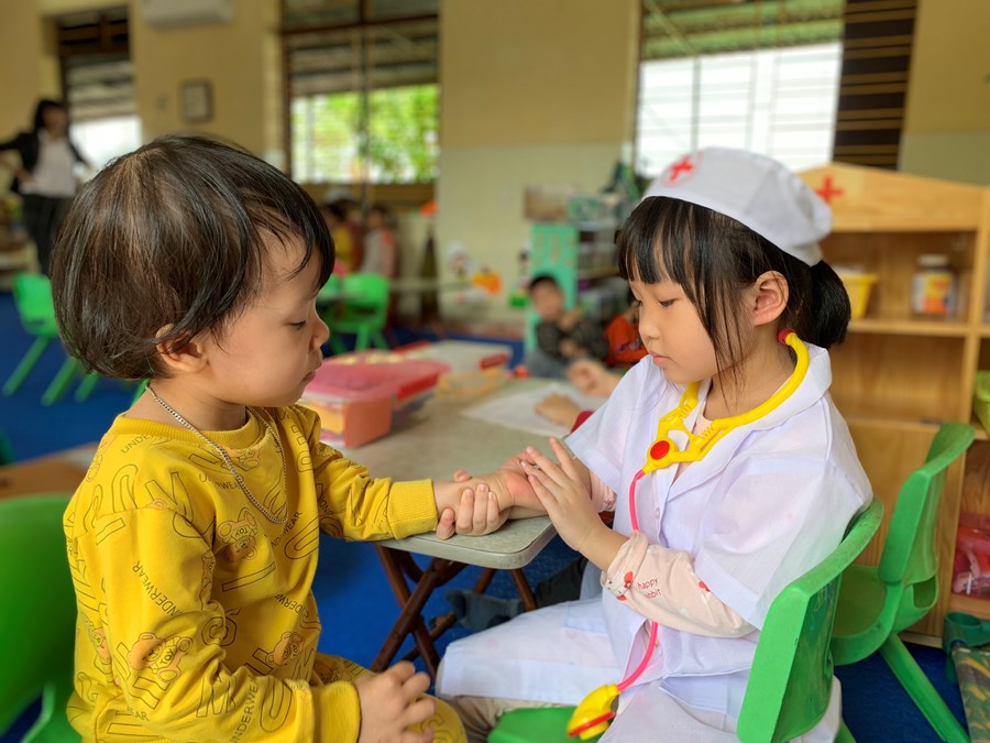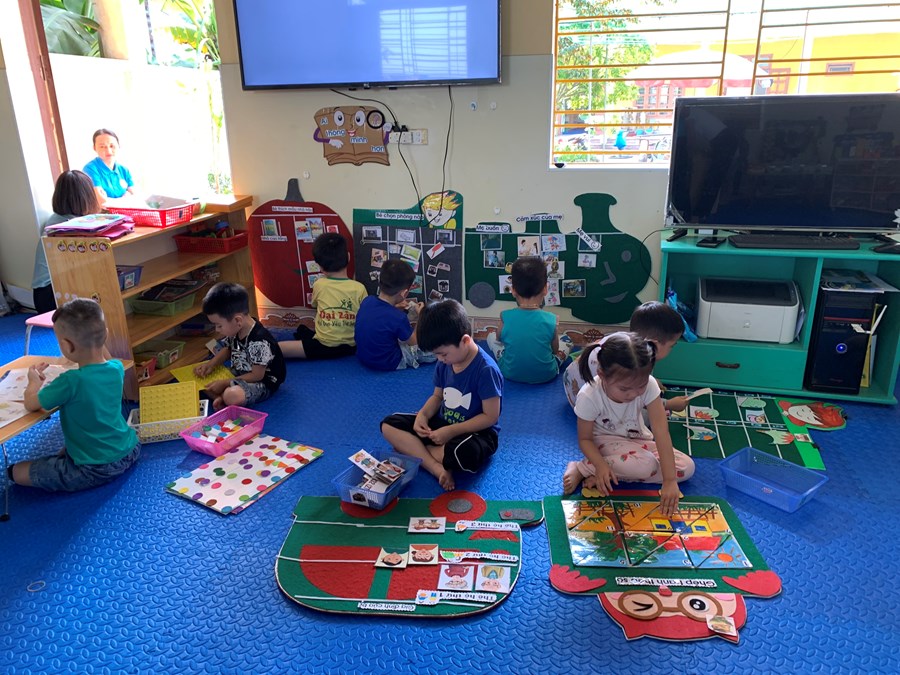 Hoạt động góc trong trường mầm non là phương tiện phát triển toàn diện về đạo đức, trí tuệ, thẩm mĩ, thể chất. Trẻ em đến trường không chỉ cần được chăm sóc sức khỏe được học tập mà quan trọng nhất là đc vui chơi… không những thế thông qua các hoạt động góc hằng ngày giúp trẻ chia sẻ niềm vui của mình với bạn bè, cộng đồng làm cho thế giới xung quanh của các bé đẹp hơn và rộng lớn hơn. Vui chơi là hoạt động chủ đạo của trẻ mầm non, vì vậy các giáo viên mầm non đóng vai trò là người hướng dẫn để trẻ có thể hoạt động một cách vui vẻ và thoải mái nhất. Trẻ tham gia vào các góc chơi ở lớp như: Góc phân vai; góc kỹ năng tự phục vụ; góc nghệ thuật (Âm nhạc - Tạo hình); góc thiên nhiên; góc học tập - khám phá; góc sách truyện…Dưới đây là một số hình ảnh của các bé lớp 4 tuổi B7 tham gia hoạt động góc.